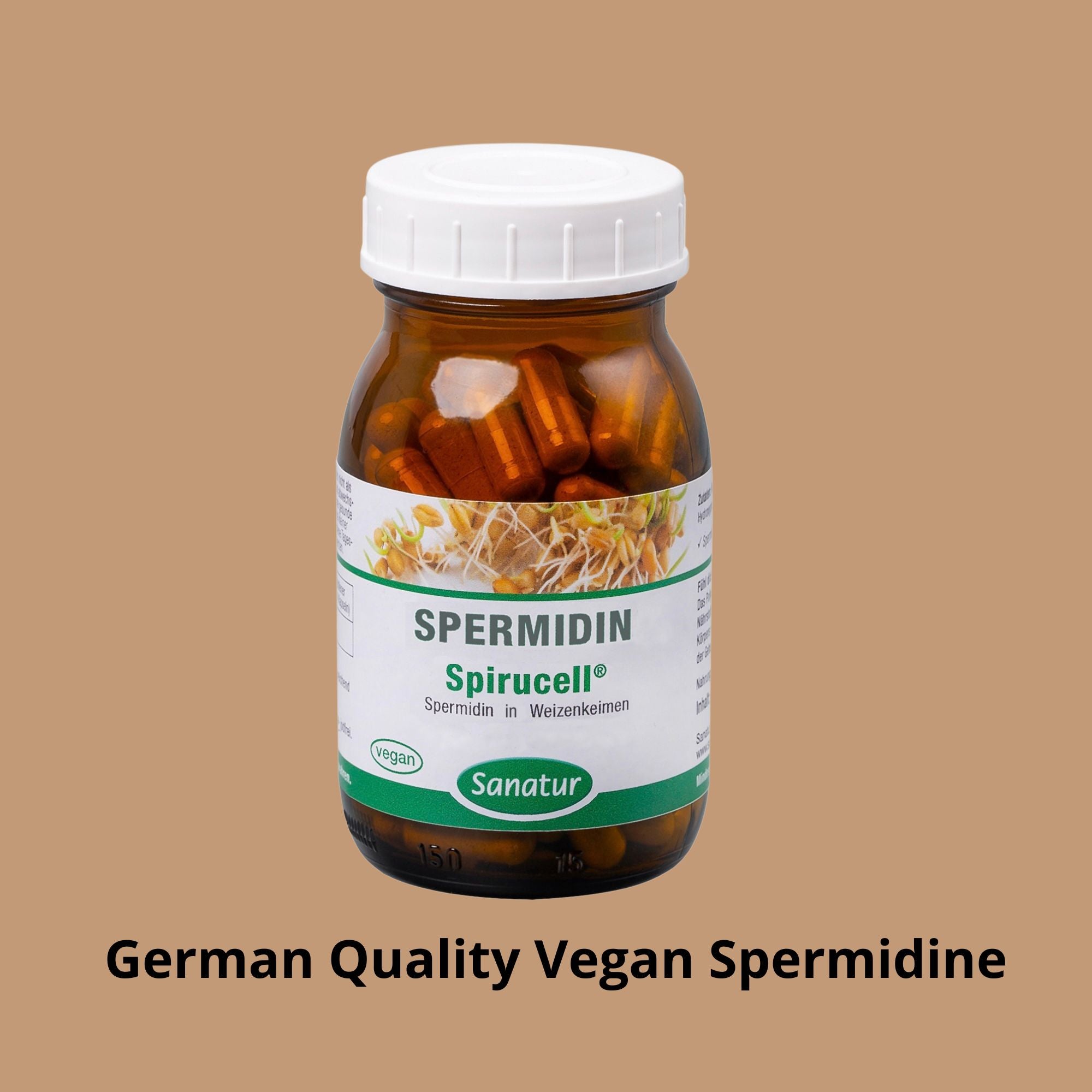 Spermidin Spirucell is a complete plant-based source of spermidine, suitable for vegans. Produced by the reputable German manufacturer Sanatur, it is made under strict control from organic wheat germ and organic buckwheat. Taking two capsules twice daily provides 0.8 mg of spermidine.