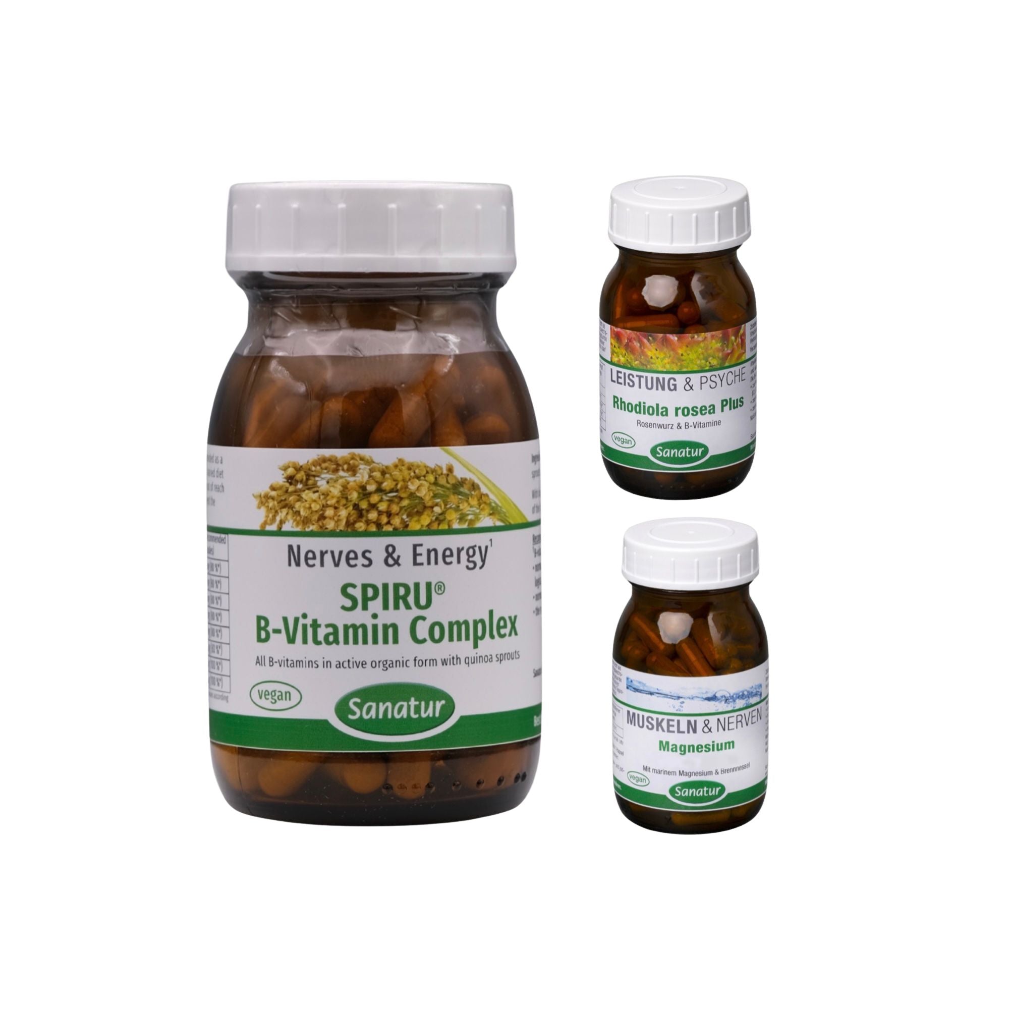 *B vitamins B3, B5, B6 and B12 are important for performance, psyche and nerves. They contribute to:
