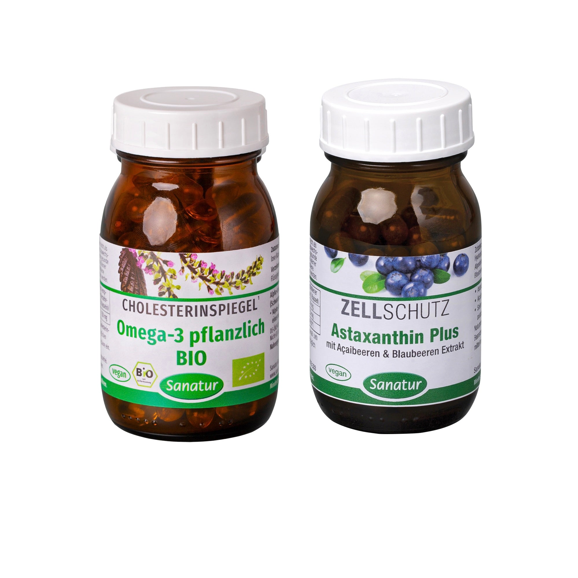 Heart and Cellular Health Support: Sanatur Omega-3 Herbal Organic delivers high levels of alpha-linolenic acid (ALA), which contributes to the maintenance of normal blood cholesterol levels. Astaxanthin Plus provides potent antioxidant protection, shielding cells from oxidative damage and supporting cardiovascular and overall cellular health.