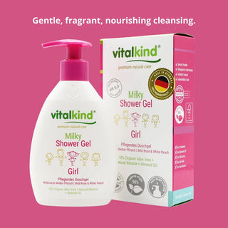 VITALKIND products are formulated with carefully selected natural ingredients such as organic shea butter, almond and apricot seed oils, aloe vera gel, and natural betaine. Free from parabens, silicones, mineral oils, and alcohol, all products are hypoallergenic, pH-balanced (5.5), and certified “very good” by the independent Dermatest Institute.